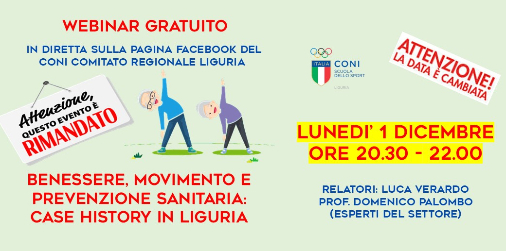 News 27 Nov 2025 Vento di ponente Contro lo Stigma e il Coraggio delle Cure: Corso formativo sul disagio sociale e sportivo, l’inclusione e la cultura della cura Sabato 29 novembre, presso l'Aula dei comuni della Provincia di Imperia (Viale Matteotti 147), si terrà l'ultimo evento formativo della Scuola Regionale dello Sport dell'anno 2025 (esclusi i corsi per dirigenti e sulla dietologia sportiva ancora in...