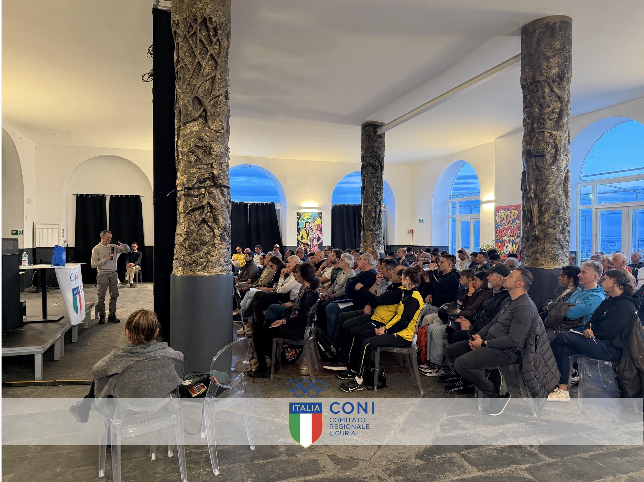 Oltre 80 iscritti ed una ventina di studenti di Unige, intervenuti per l'iniziativa gratuita della Scuola Regionale dello Sport del CONI Liguria, hanno riempito la bella sala messa a disposizione del CONI Regionale dai gestori della struttura.
